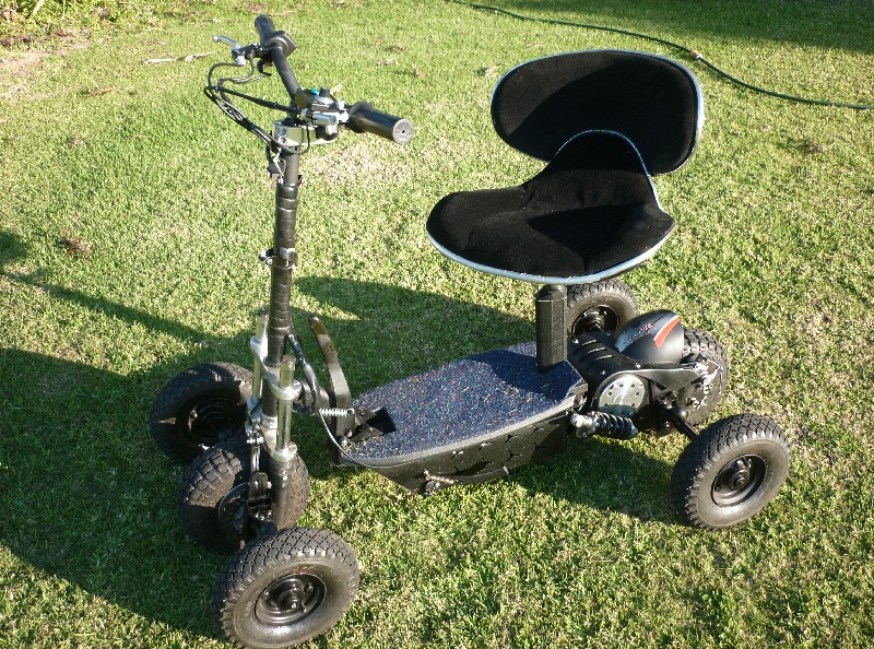 The scooter folds up and can ride on tar and dirt roads.
